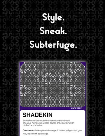 Come play the Shadow Genasi/Shadekin if you like the three S's: Style, Sneak, & Subterfuge.